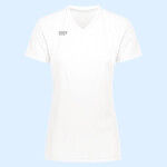 * 84% polyester/16% spandex knit with color secure(r) technology that helps prevent dye migration * 90% polyester/10% spandex wicking mesh inserts with color secure(r) technology that helps prevent dye migration * 4-Way stretch properties allow for increased mobility * Wicks moisture * Ladies' fit * Tag-free label * High Five logo on right chest * V-neck collar * Strategically placed seams for maximum mobility and comfort * Raglan sleeves
