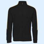 Heavyweight 100% polyester matte brushed tricot * Heat sealed label * Front zipper * Contrast color inserts * Set-in sleeves * Front pockets * Self-fabric cuffs * Open bottom